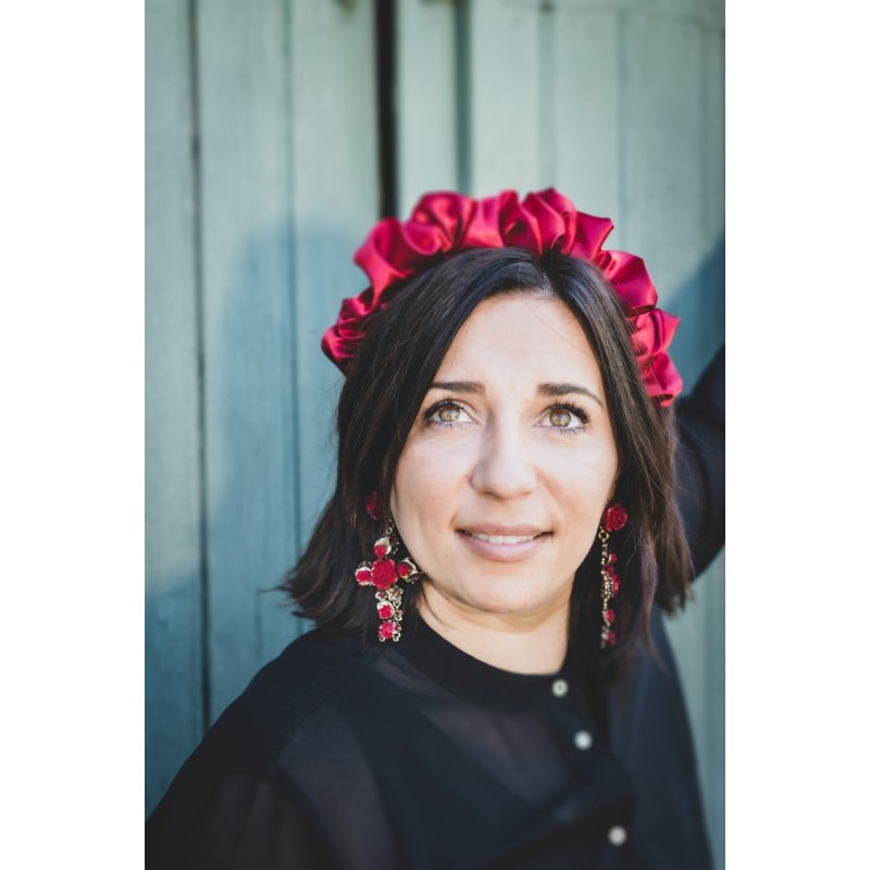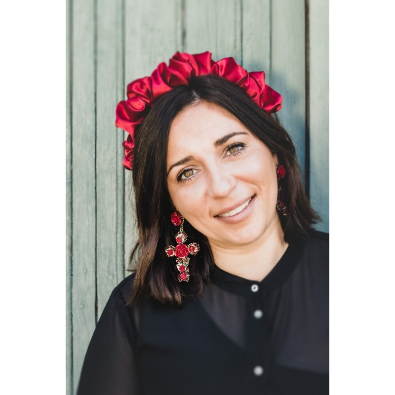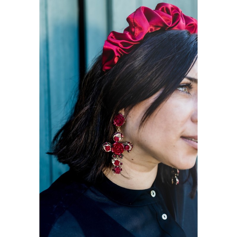 Serre Tête Over size en Satin plissé rouge Carmin.