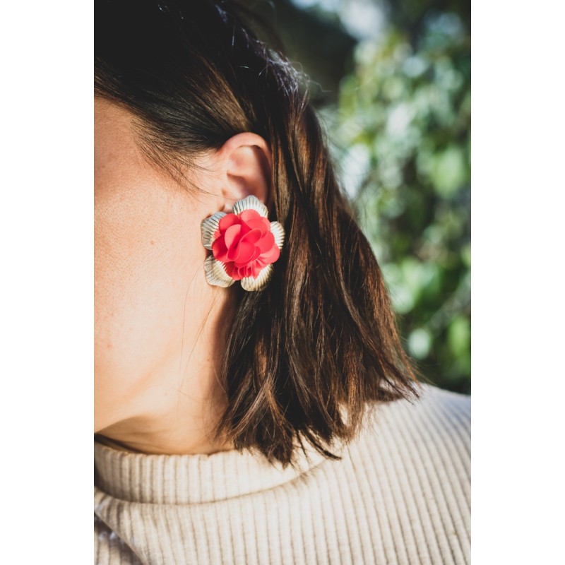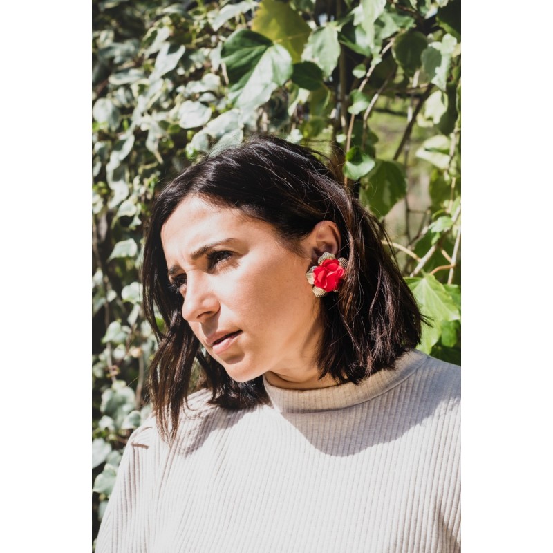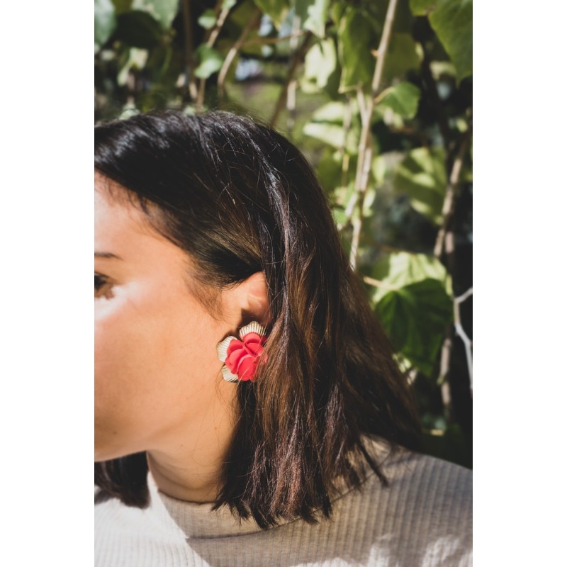 Boucles d'oreilles dorées en forme de fleur et tissu
