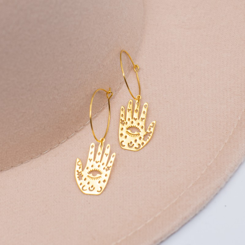 Créoles et pendentif de main de fatma porte bonheur