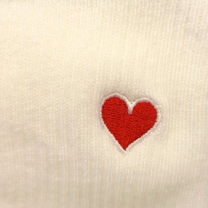 Pour elle, le modèle est légèrement écru et doux avec un cœur brodé, pour lui le modèle est plus sport avec un cœur tissé dans le fil…