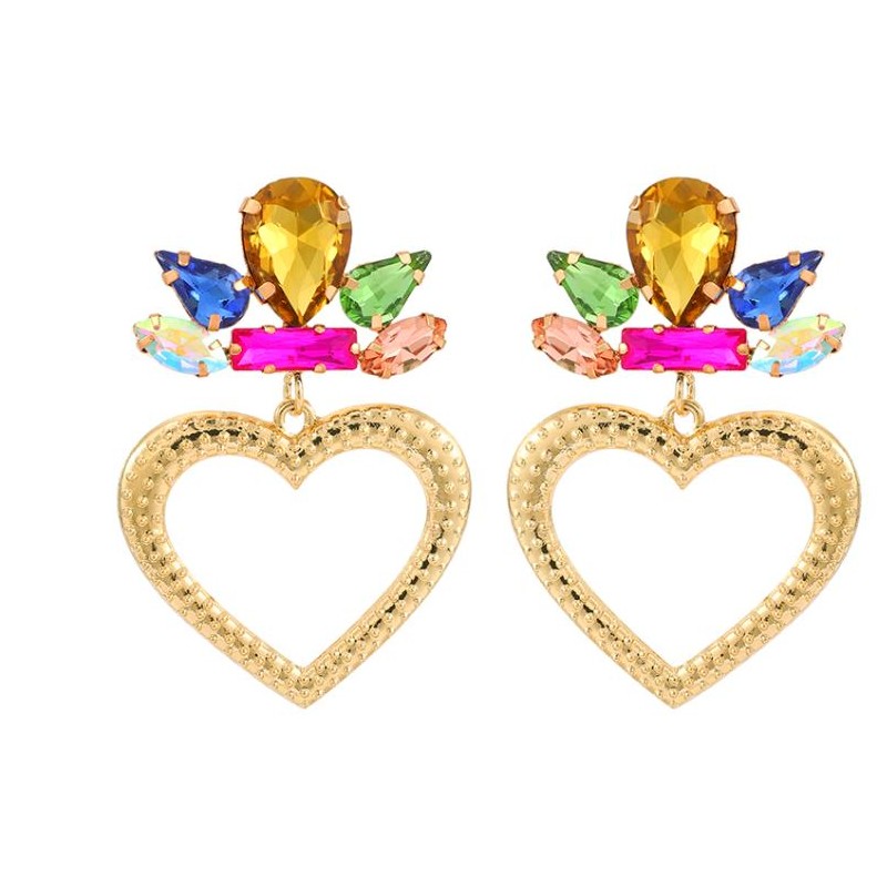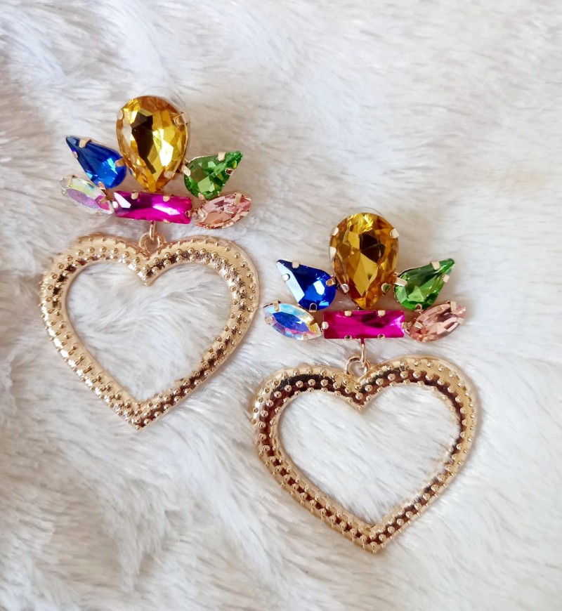 Magnifiques boucles en forme de cœur décorées de pierres en cristal aux couleurs très lumineuses.