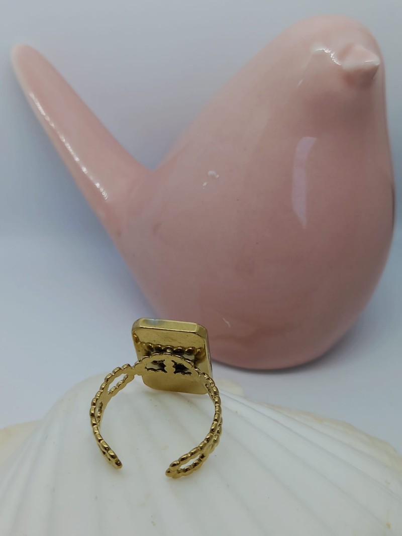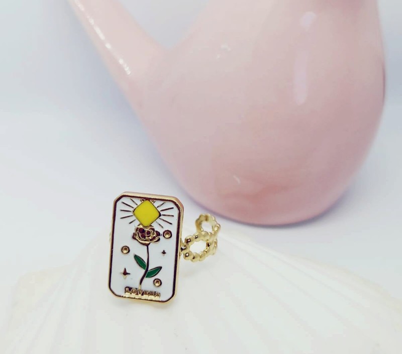 Bague en acier inoxydable en forme de carte de tarot symbolisant l'amour, avec l'inscription LOVERS.