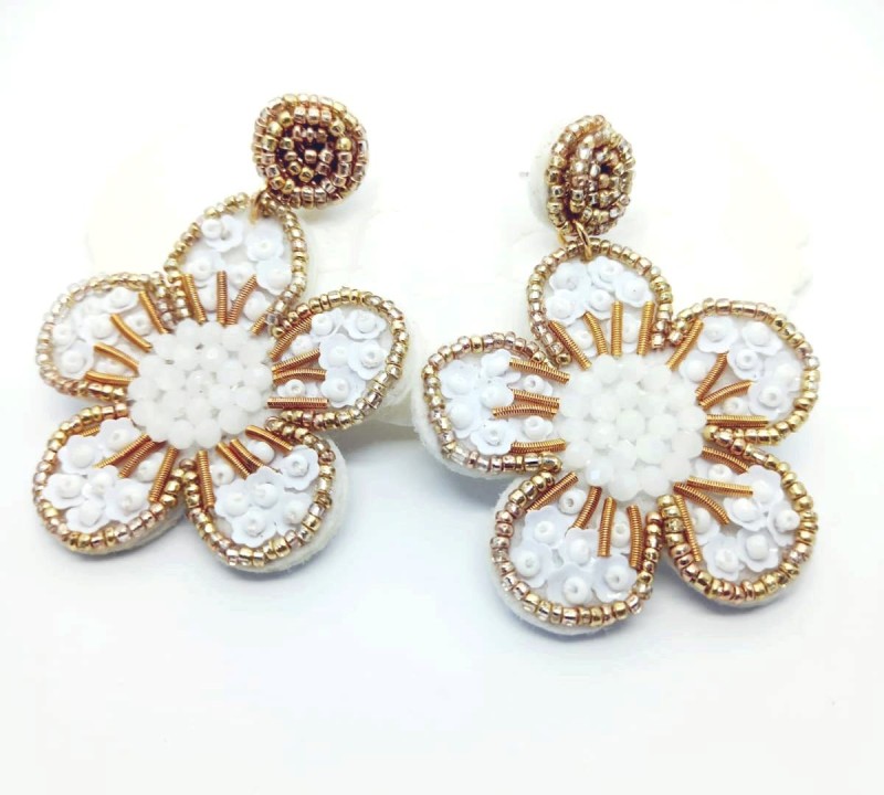 Magnifiques Boucles d'oreilles baroques perlées en forme de fleur.