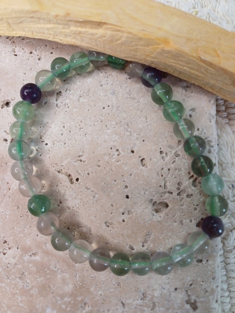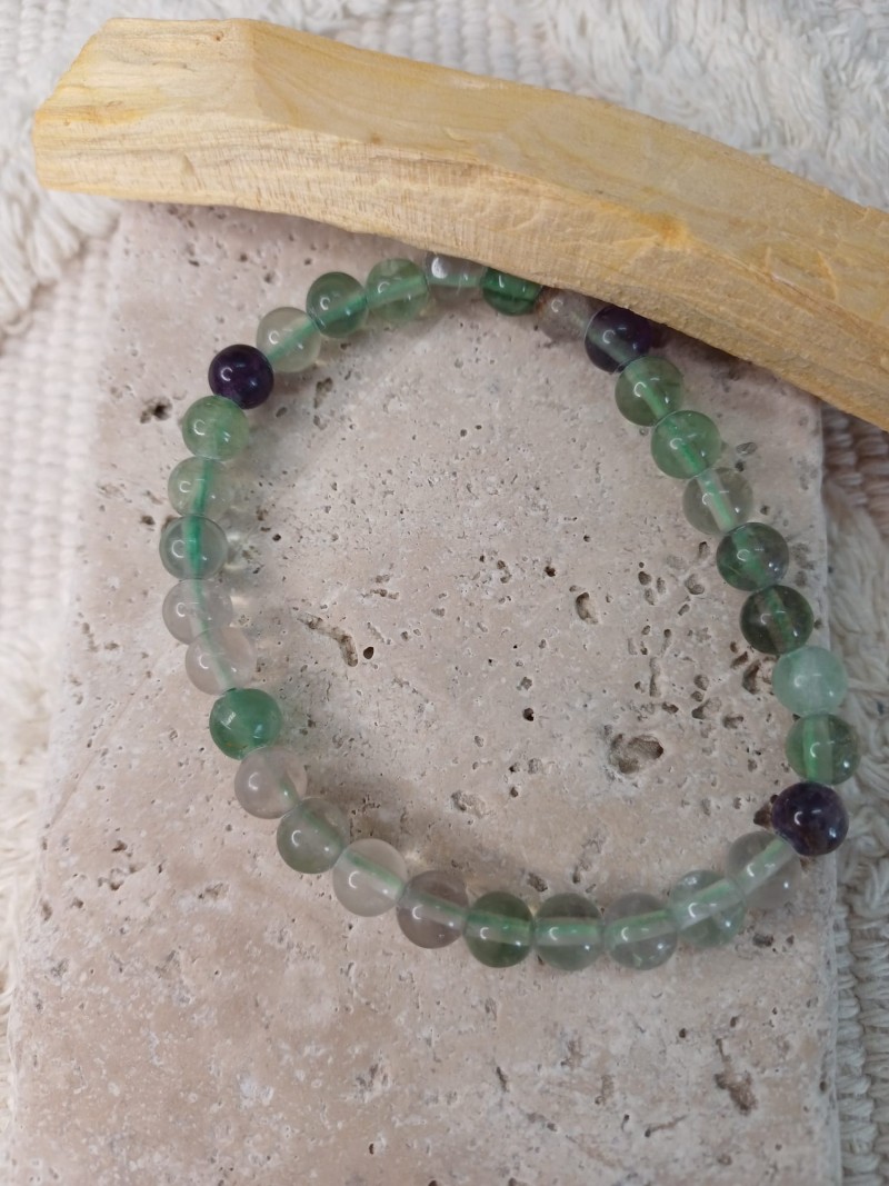 Éveillez votre joie intérieure et irradiez d'une aura vibrante et colorée avec le Bracelet Fluorine, un bijou raffiné qui allie la beauté chatoyante de la fluorine à ses vertus apaisantes et stimulantes.