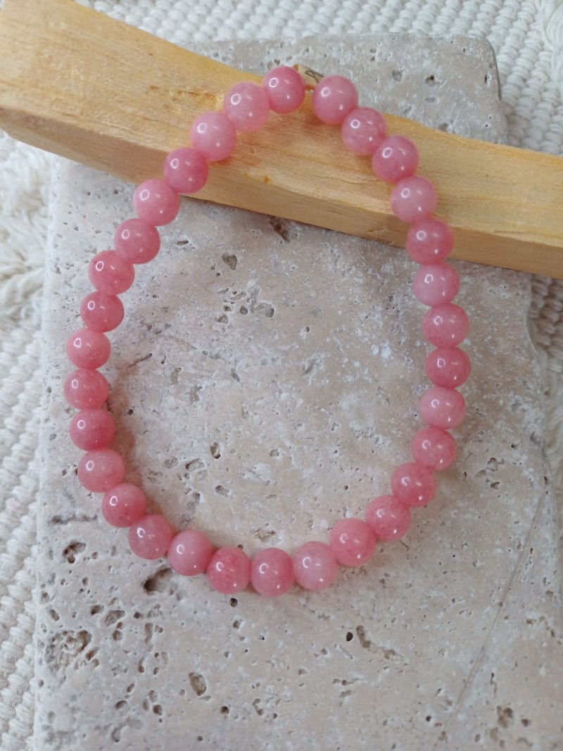 Matériaux : perles de calcédoine rose 6mm et fil élastique robuste