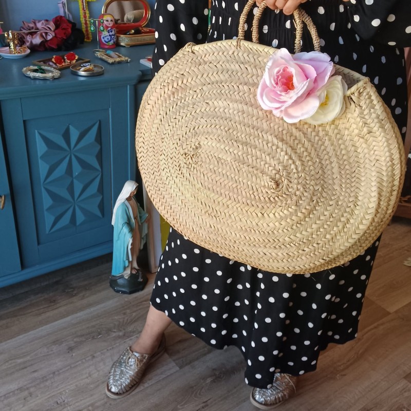 Entièrement tressé main, en feuilles de palmier, il sera l'accessoire indispensable pour un look d'été, ou une virée au Marché!