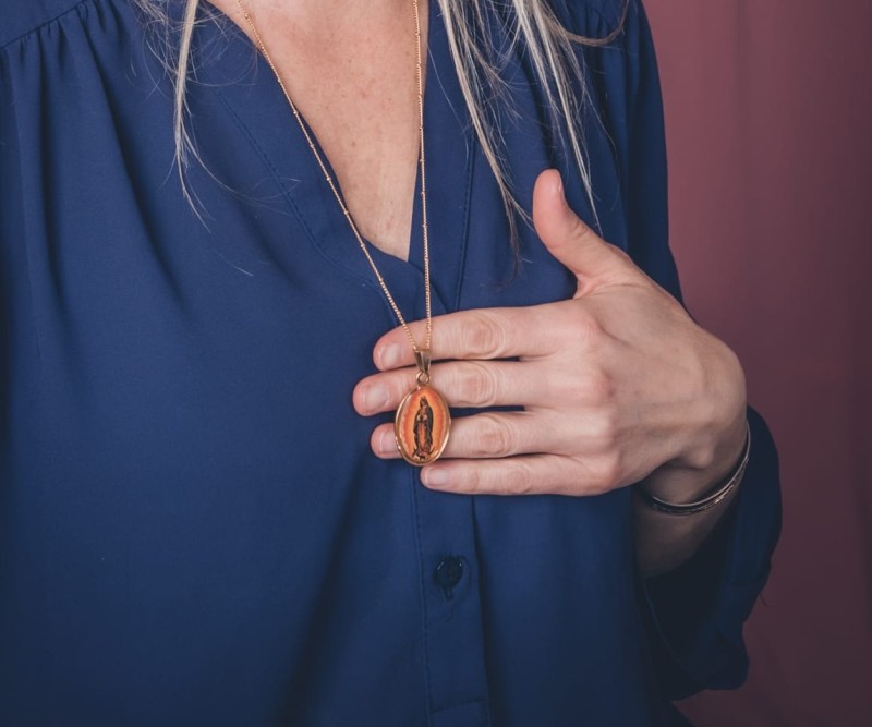 Ce collier unique en son genre est un symbole puissant de foi et de culture. Le médaillon central représente la Vierge Marie de Guadeloupe, vénérée dans les Caraïbes et en Amérique latine comme protectrice des marins et des voyageurs. Le style mexicain bohème du médaillon, avec ses couleurs vives et ses motifs floraux, ajoute une touche d'exotisme et d'originalité à ce bijou.