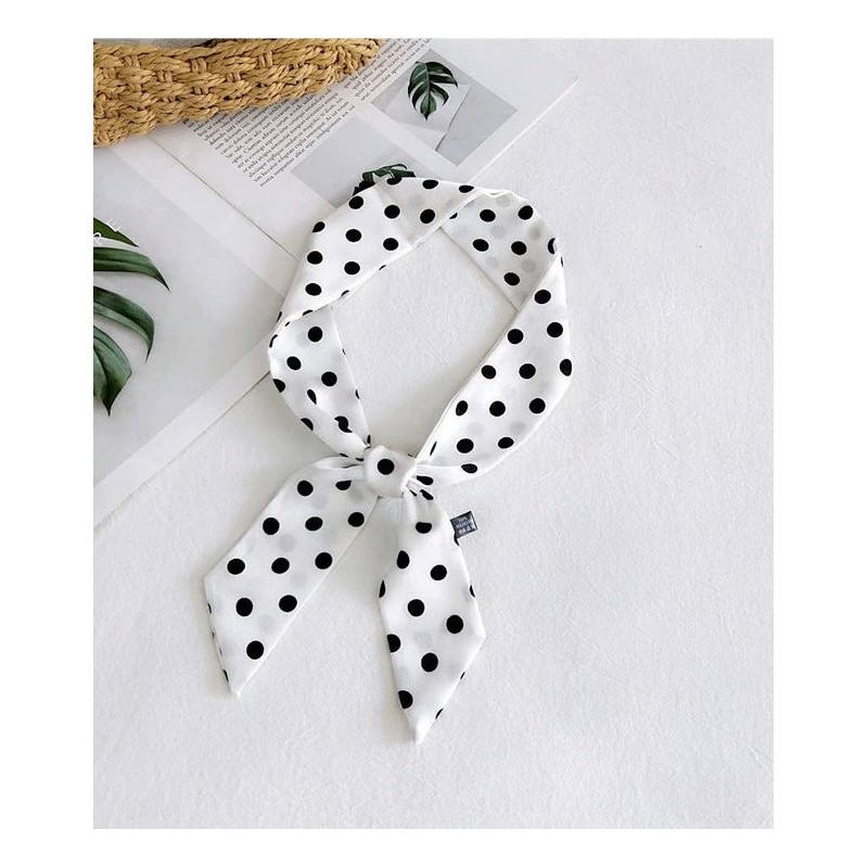 Ruban de satin imprimé à pois pouvant se porter dans les cheveux, à la anse de votre sac, autour d'un chapeau, en turban...