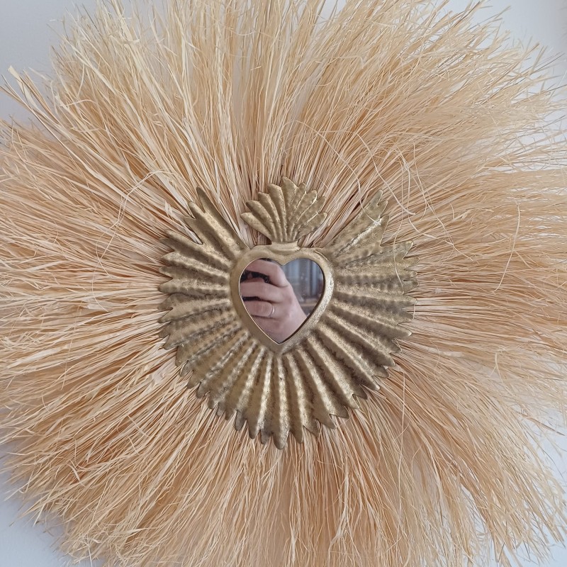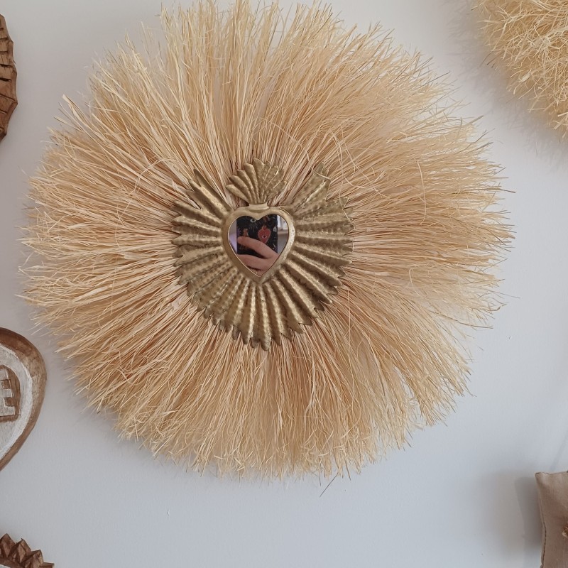 Miroir Soleil en Raphia et Cœur Sacré
