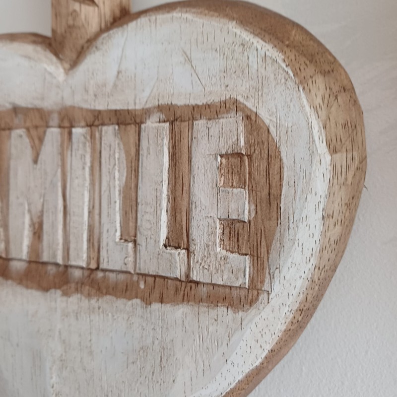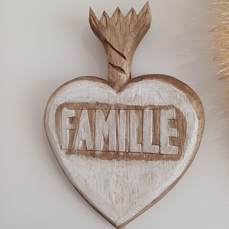 Ex-Voto Cœur en Bois Sculpté à la Main FAMILLE - Artisanat Balinais