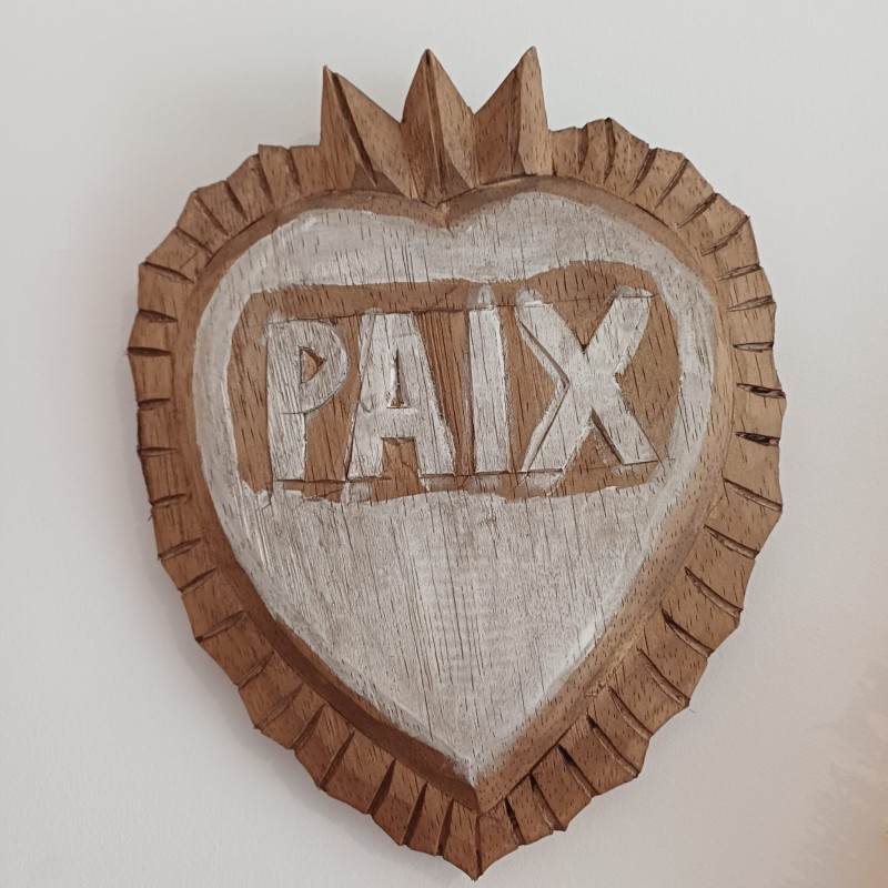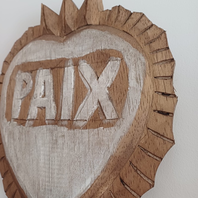 Ex-Voto Cœur en Bois Sculpté à la Main PAIX- Artisanat Balinais