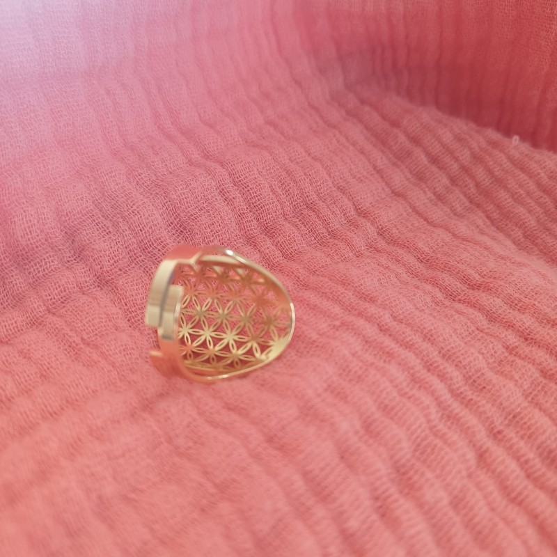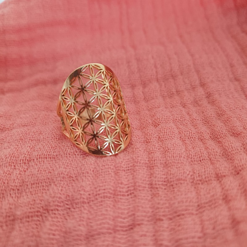 Bague Fleur de Vie – Acier Inoxydable Doré