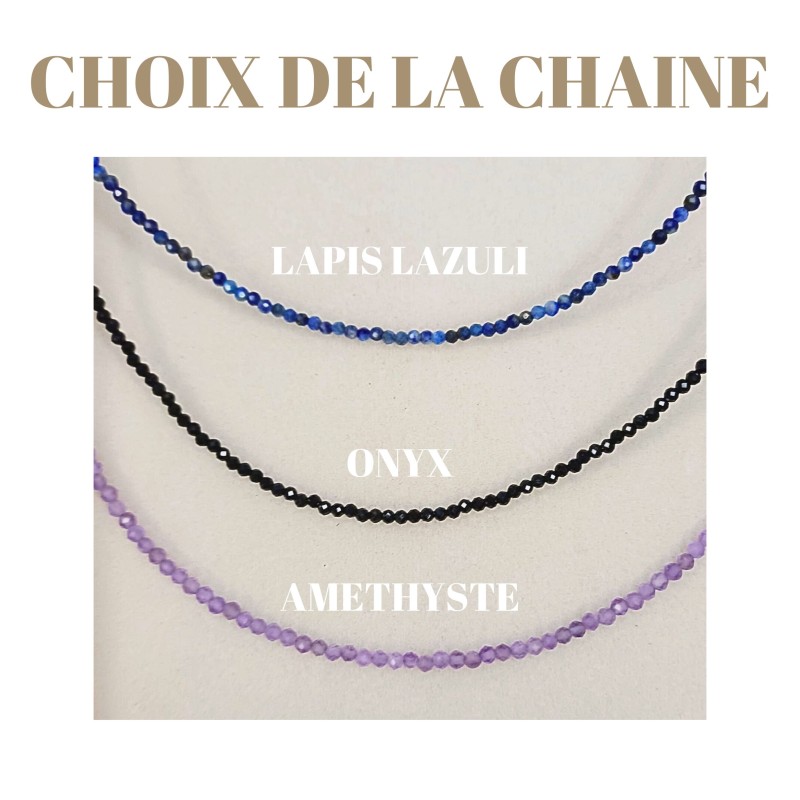 Chaque collier est imaginé et créé avec intention, en utilisant les pouvoirs subtils de la lithothérapie.