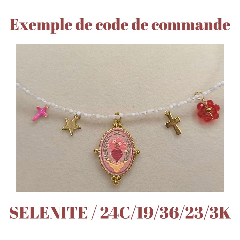 Pour Commander indique la pierre choisie pour ton Ras de cou ainsi que ton code de commande charms de gauche à droite.