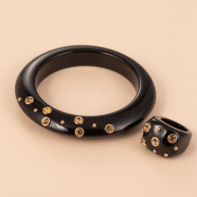Cette parure composée d'un jonc est d'une bague en résine, adopte un style original et vintage grâce à ses pierres Oversize et sa matière en résine.