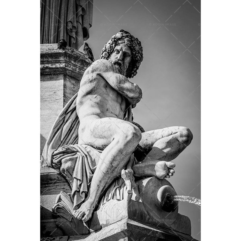 Le Gard ou Vardo, également divinité masculine au visage courroucé par les obstacles qu’il trouve sur sa route, tient un trident de sa main droite, rappelant Neptune. La Fontaîne Pradier représente symboliquement la ville de Nîmes entourée des fleuves et des fontaines qui arrosent son territoire.
